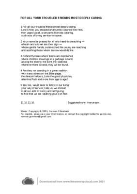 This hymn starts from the Gospel narrative of the foot washing and then proceeds to praise all (including deacons!) who engage in a ministry of costly service. They stand in the great tradition of many on the Scripture page who were "helpers".