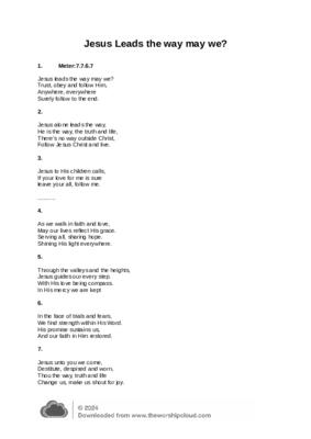 This hymn is a testament to the Christian journey of following Jesus Christ, emphasizing the importance of trust, obedience, and faith. It acknowledges Jesus as the sole source of truth and life, encouraging believers to leave behind worldly attachments to gain spiritual rest. Along this path, Christians are called to walk in love, serving others, and sharing hope. Through life's challenges, Jesus guides and sustains His followers with His love and promises, offering strength and joy amid trials and fostering unwavering faith.