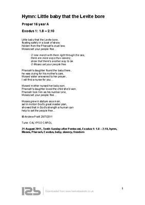 21 August 2011, Tenth Sunday after Pentecost, Exodus 1: 1.8 – 2.10, hymn,