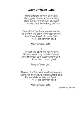 A song about the gifts of the Holy Spirit - easy to sing and play.
