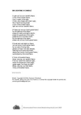 This is the words-only version of my hymn in praise of the Trinity that may be used to accompany the lighting of a candle. Two tunes are available to accompany these words, named Acorn and Candle Flame, both by Laurence Wareing.