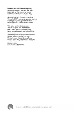 We seek the welfare of this place;