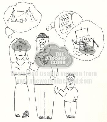 Having sold all his possesions and given the money to the poor the Thessalonian writes to Paul, complaining that his family are naffed off with him and that the taxman is chasing him. Paul asks whether he has considered working for a living?