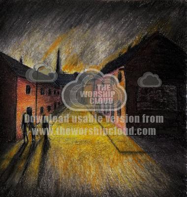 The Silhouette of three men in street light look down a street to spy a couple huddled in a doorway