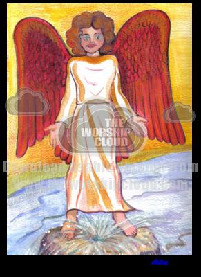 Painting in water colour and watercolour pencils. A work of the imagination thinking of spiritual connections. I once had a mental picture of an angel with red wings while sitting in church.This is possibly an extension of this.by Audrey Anne Hogan