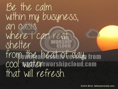 A prayer that can be used within a time of meditation and quietness, with a theme very much about peace and refreshment