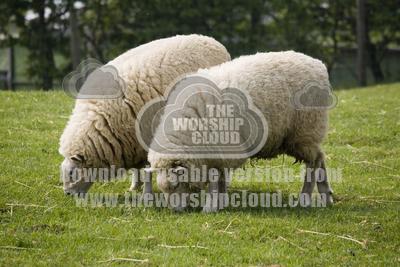 Beltex double muscled sheep grazing Rare Breed Trust Cotswold Farm Park Temple Guiting near Stow on the Wold UK. This is a hybrid breed first introduced from Belgium in 1989. It;s main characteristic is the double muscled hind quarters which provide good meat.