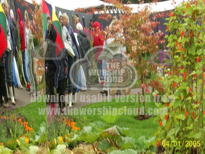 This image is depicting the kind of garden we can expect in the future due to global warming.Distorting mirrors to reflect light.