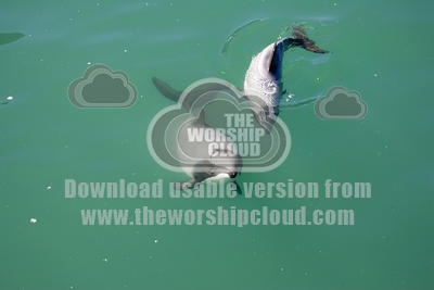 Hectors dolphins Cephalorhynchus hectori Akaroa Harbour South Island New Zealand. One of the smallest marine mammals it is endangered by fishing nets and boat propellors.