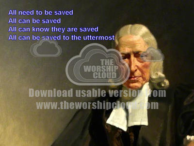 John Wesley's summary of the Methodist doctrine of salvation, superimposed on his picture.
