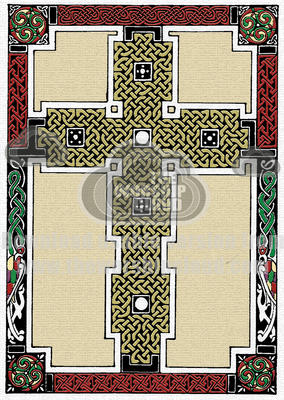 This Celtic cross is not set with in a circle as most modern portrayals are. For the most part Celtic crosses in manuscripts of the 6th - 9th centuries did not use the circle. However the stone crosses did, which leads many historians to believe the primary purpose of the circle was to prevent the arms of the cross falling off. Although the image of Christ within creation also works well. This image was originally hand drawn but coloured and enhanced on computer