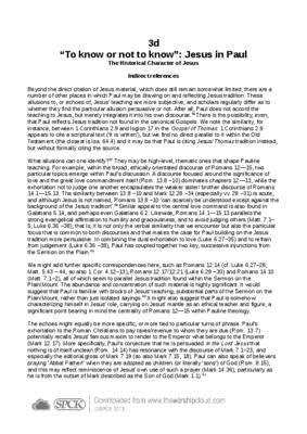 Beyond the direct citation of Jesus material, which does still remain somewhat limited, there are a number of other places in which Paul may be drawing on and reflecting Jesus tradition. These allusions to, or echoes of, Jesus’ teaching are more subjective, and scholars regularly differ as to whether they find the particular allusion persuasive or not…