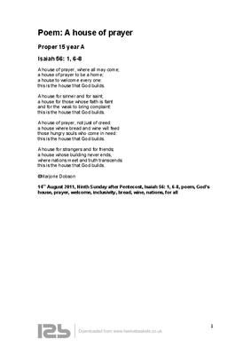 14th August 2011, Ninth Sunday after Pentecost, Isaiah 56: 1, 6-8, poem, God’s