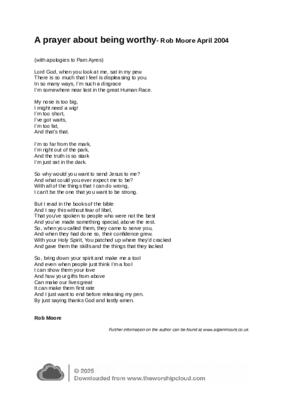 This is a prayer which is written in a sort of cheeky Pam Ayres style, thinking about our imperfections and how they don't stop us serving Christ. I've got a website with other bits and pieces, www.worshiplibrary.co.uk.