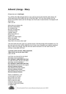 An Advent liturgy of prayers on the theme of Mary, the Mother of Jesus.