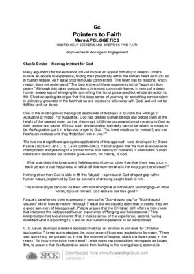 Many arguments for the existence of God involve an appeal primarily to reason. Others involve an appeal to experience, finding their plausibility within the human heart as much as in human reason…