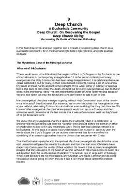 In this final chapter we shall pull together some threads by exploring deep church as a eucharistic community, for in the Eucharist right belief, right worship, and right practice embrace…