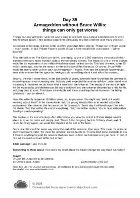These Meditations are taken from the book 'Life, The Universe And Everything' by David Wilkinson - Click Here