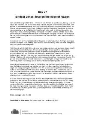 Thoughts taken from TV, Books and life experiences on various topics and given a Christian slant to stimulate thoughts. The topic here for Day 27 is 'Do I really know that I am loved by God?' Looking at the character 'Bridget Jones' with reference to 'Notting Hill', 'Love Actually' and 'Sommersby'.
