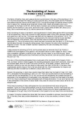 The family of Martha, Mary, and Lazarus returns to prominence in the story of the anointing in 12:1–8. In the interval between the raising of Lazarus and this story, the chief priests and the Pharisees have determined that Jesus must be killed (11:53)…