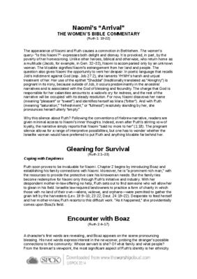 The appearance of Naomi and Ruth causes a commotion in Bethlehem. The women’s query- “Is this Naomi?”- expresses both delight and dismay…