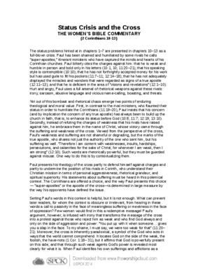 The status problems hinted at in chapters 1–7 are presented in chapters 10–13 as a full-blown crisis. Paul has been shamed and humiliated by some rivals he calls “super-apostles,” itinerant ministers who have captured the minds and hearts of his Corinthian churches…