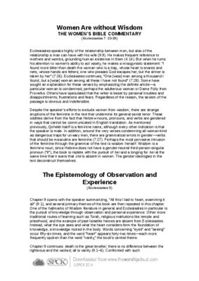 Ecclesiastes speaks highly of the relationship between men, but also of the relationship a man can have with his wife (9:9). He makes frequent reference to mothers and wombs, grounding human existence in them (4:14)…