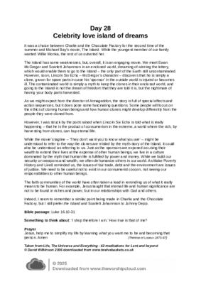 Thoughts taken from TV, Books and life experiences on various topics and given a Christian slant to stimulate thoughts. The topic here for Day 28 is 'Not living in a consumerist cocoon' Looking at the film 'The Island' with reference to Ewan McGregor's character 'Lincoln Six Echo'.