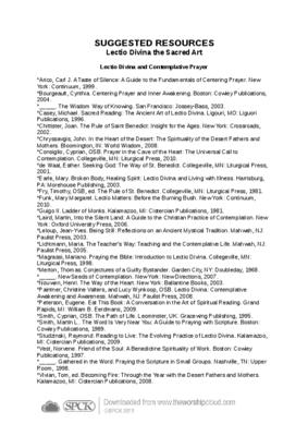 *Arico, Carl J. A Taste of Silence: A Guide to the Fundamentals of Centering Prayer. New York: Continuum, 1999…
