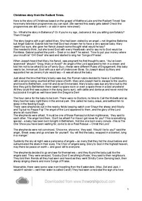 Here is the story of Christmas based on the gospel of Matthew Luke and the Radiant Times! See how many television programmes you can spot. (Be warned this easily gets dated! Check the programmes are still current – or add in some new ones!)