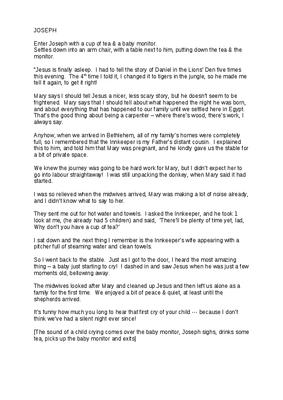 Christmas - Joseph, monologue. Joseph reflects on how the nights have not been silent since the birth of Jesus, and remembers the night he was born