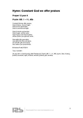 24 July 2011, Sixth Sunday after Pentecost, Psalm 105: 1 – 11, 45b, hymn, God, history,