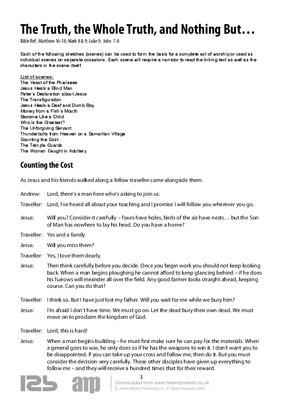 Each of the following sketches (scenes) can be used to form the basis for a complete act of worship or used as individual scenes on separate occasions. Each scene will require a narrator to read the linking text as well as the characters in the scene itself.