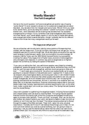 And so to the crunch question: isn’t post-evangelical just another way of saying ‘woolly liberal’? It never ceases to amaze me how paranoid evangelicals are about liberalism. Any deviation from the ‘straight and narrow’ and, ‘Whoa! I think you need to be careful there, you’re sounding like a liberal.’ ‘Liberal’ is of course a wonderful blanket term, which describes almost anything that deviates from the accepted evangelical line on things. It is my contention that ‘post-evangelical’ does certainly not mean ‘liberal’, and I would deeply regret it if, out of a lack of viable alternatives, post-evangelicals drifted towards liberalism, though I probably feel this for different reasons from those that many evangelicals would put forward…