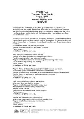O Lord, as Peter confessed you as Christ, give us boldness to proclaim your redeeming love and saving power in the world; may we be ready to beat the cross and give ourselves for others and the advancement of your kingdom; we ask this in your Name, Jesus our Lord, who with the Father and the Holy Spirit are one God, now and forever. Amen…