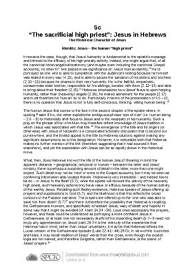 It remains the case, though, that Jesus’ humanity is fundamental to the epistle’s message and intrinsic to the efficacy of his high-priestly activity. Indeed, one might argue that, of all the canonical nonevangelical testimony (and maybe even including the canonical Gospel accounts), no other NT text places more significance on Jesus’ human identity.23 He is portrayed as one who is able to sympathize with the audience’s testing because he himself was tested in every way (4.15), and is able to secure the salvation of his sisters and brothers