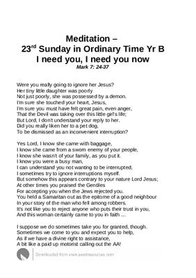 Meditation - 23rd Sunday in Ordinary Time Year B