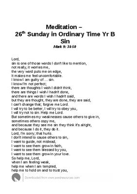 Meditation – 26th Sunday in Ordinary Time Yr B