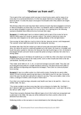 These short reflections, which can form the basis of a sermon, identify three different kinds of evil.The origin of each one is identified both to help us to overcome them, and to pray more effectively about them in a range of scenarios.