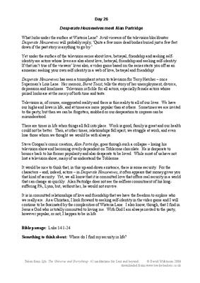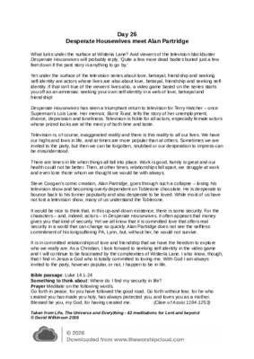 Thoughts taken from TV, Books and life experiences on various topics and given a Christian slant to stimulate thoughts. The topic here for Day 26 is 'Where do I find my security in life?' Looking at the hit TV programme 'Desperate Housewives'.
