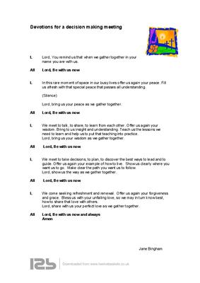 We meet to talk, to share, to learn from each other. Offer us again your wisdom. Bring to us insight and understanding. Teach us the lessons we need to learn and help us to put that teaching into practice. Lord, bring us your wisdom as we gather together.