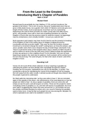 Mustard seed is proverbially tiny (see Matthew 17:20), and yet it produces ‘the greatest of all shrubs’. This is not, of course, the puny ‘mustard-and-cress’ that we grow in little plastic boxes, but a garden herb which in Palestine commonly grew to a height of three metres. Such a spectacular result from such an unpromising beginning is the stuff of which proverbs are made (‘Great oaks from little acorns grow’), and provides Jesus with a clear and compelling illustration for what the kingdom of God is like (see the previous study for what this means). Its beginnings may be unimpressive, even virtually invisible— but just you wait and see!…