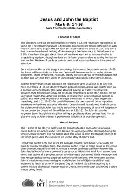 The disciples, sent out on their mission in verses 7–13, will return and report back in verse 30. The intervening space is filled with an unexpected return to the person with whom Mark’s story began….