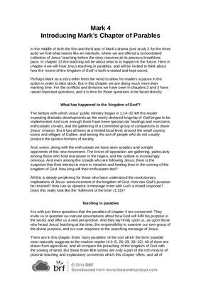In the middle of both the first and third acts of Mark’s drama (see study 2 for the three acts) we find what seems like an interlude, where we are offered a concentrated collection of Jesus’ teaching before the story resumes at its previous breathless pace. In chapter 13 the teaching will be about what is to happen in the future. Here in chapter 4 we will hear Jesus teaching in parables, and will be invited to think about how the ‘secret of the kingdom of God’ is both revealed and kept secret…