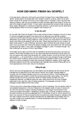 HOW DID MARK FINISH his GOSPEL?