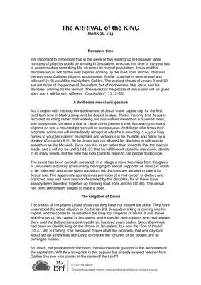 It is important to remember that in the week or two leading up to Passover large numbers of pilgrims would be arriving in Jerusalem, which at this time of the year had to accommodate something like six times its normal population. Jesus and his disciples would not be the only pilgrims coming up the road from Jericho. This was the way most Galilean pilgrims would arrive. So the crowd who ‘went ahead and followed’ (v. 9) would be mainly from Galilee. The excited shouts of verses 9 and 10 are not those of the people of Jerusalem, but of northerners, like Jesus and his disciples, arriving for the festival. The verdict of the people of Jerusalem will be given later, and it will be very different: ‘Crucify him!’ (15:11–15)…