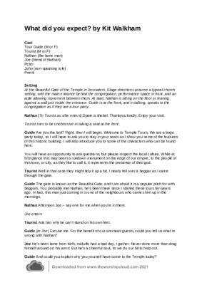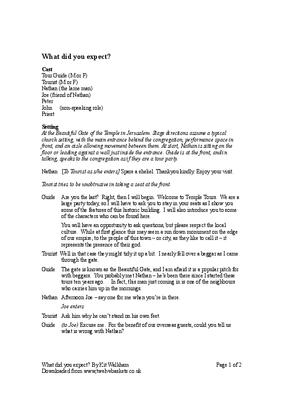 Dramatisation of Acts 3:1-10 - Peter and John heal the lame man - to the consternation of a priest who is telling a tour party about the heritage of the temple.
