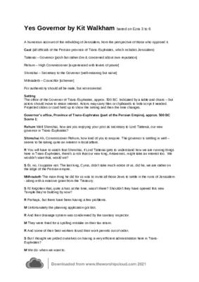 Drama based on Ezra 3 to 6, covering the 10 year struggle of the Jews to rebuild Jerusalem from the viewpoint of officials in the Persian empire. Style a tribute to the obvious TV series, but characters taken from the Bible. 4 characters - should all be male. 6 short scenes, so longer than normal sketch - about 10 minutes. Could split into 2 or 3 sections.