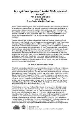 I have spoken about Origen at some length because he is the classic representative of a tradition of interpretation that ‘was the formula for Christian biblical exegesis as it was practised without interruption until the sixteenth century, when the critical era turned it into simply one possible way of reading the Bible’.1 Origen reminds us that reading Scripture can be ‘a complete exegetical act, one which integrates textual, liturgical and existential realities that are often weakened today by their mutual isolation’…