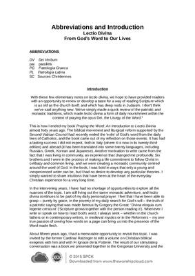 With these few elementary notes on lectio divina, we hope to have provided readers with an opportunity to renew or develop a taste for a way of reading Scripture which is as old as the church itself, and which has deep roots in Judaism. I don’t think we’ve said anything new. We’ve simply made a quick review of the patristic and monastic traditions, which made lectio divina a form of daily nourishment within the context of praying the opus Dei, the Liturgy of the Word…